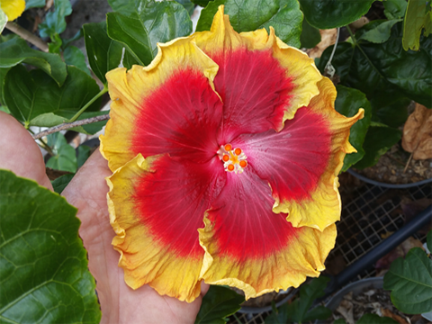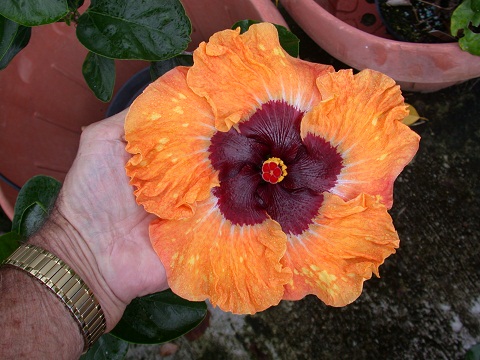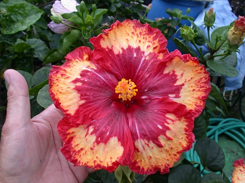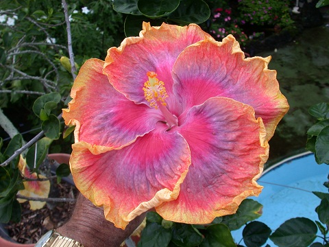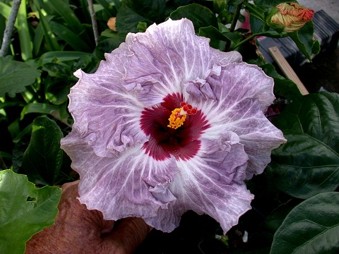 Hi friends and fellow hibiscus enthusiasts: Permit me to introduce myself. My name is Richard Johnson, Dick to friends. In my retirement years I have zeroed in on what I love best, i.e., hybridizing tropical hibiscus. It only requires, time, soil, water, and sunshine to derive great personal reward by producing flowers that would have never existed before. There is a great satisfaction in getting up in the morning to find a world premiere, first ever bloom that you in cooperation with mother nature have created. I do this simply for my personal pleasure as a glorified hobby. As I live in Tahiti, a definite paradise on earth in many ways, and as my flowers are produced here, I have named this endeavor and website Hibiscus Of Tahiti. I grow the vast majority of the parents plants and seedlings on the roof of my home, since I have very little land area around my house. Most of my hybrids begin with the prefix Tahitian and they have become renown around the world. A number of them are world class flowers that have won many awards. For example -Tahitian Princess, Tahitian Purple Splendor, which happen to be a couple that have won the prestigious title of Hibiscus Of the Year with the International Hibiscus Society. | |