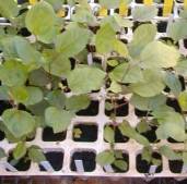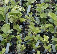 Growing Media: The planting mix is not that critical, requiring only that it does not remain soggy wet or contain fertilizer in dosages intended for potted plants.Any commercial seed raising mix should be quite adequate.If such is not readily available, there are many formulas for producing a mix adequate for germinating seed which range from just sand or vermiculite to a mixture of any of the following: sand, peat, pearlite and/or vermiculite.There are many different means of planting seed, and it is up to each person to decide upon what seems to suit their situation best. Seeds can be planted individually in small pots, cell trays, Oasis or Rockwool cubes, etc.With these methods transplanting is simple as there are no adjacent seedlings resulting in a tangle of roots.However, as hibiscus are generally tolerant of the stress of transplanting, one of the simplest means is to place the seed raising mix in a 4� pot and evenly space up to 10 seeds on the surface.Plant about 3 diameters deep by covering with about �� (6 mm) of mix and water gently but thoroughly.Experienced seed growers keep the media just damp but not soggy, under which circumstances there is generally little problem with fungus.However, in damp and cool conditions, fungus may attack the stem of the seedling at the soil level, causing it to topple over which is normally fatal and irreversible. This is called damping off and can be prevented by the use of a fungicide.Failing a commercial product made for this purpose, a 10% bleach solution can be used as a fungicide (1 part out of the bottle to 9 parts of water).Some prefer to apply a fungicide incorporated into the water upon sowing of the seed, which is probably a good precaution for those that are new to growing seed.However, unless growing seed on the cool and wet side, this is often unnecessary.